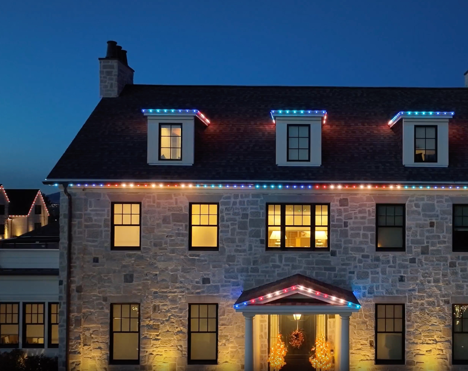Our custom-designed system tucks perfectly beneath your roofline. The wiring is hidden, giving your home a clean look during the day and a stunning glow at night. Fully warranted and built to last.